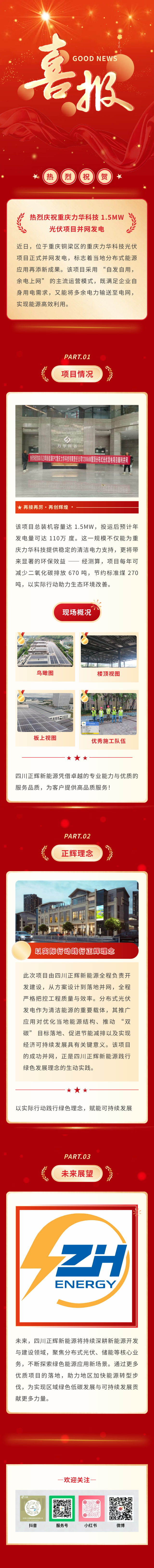 1.5MW光伏項(xiàng)目在重慶力華科技并網(wǎng)發(fā)電,正輝再添綠色新動能
